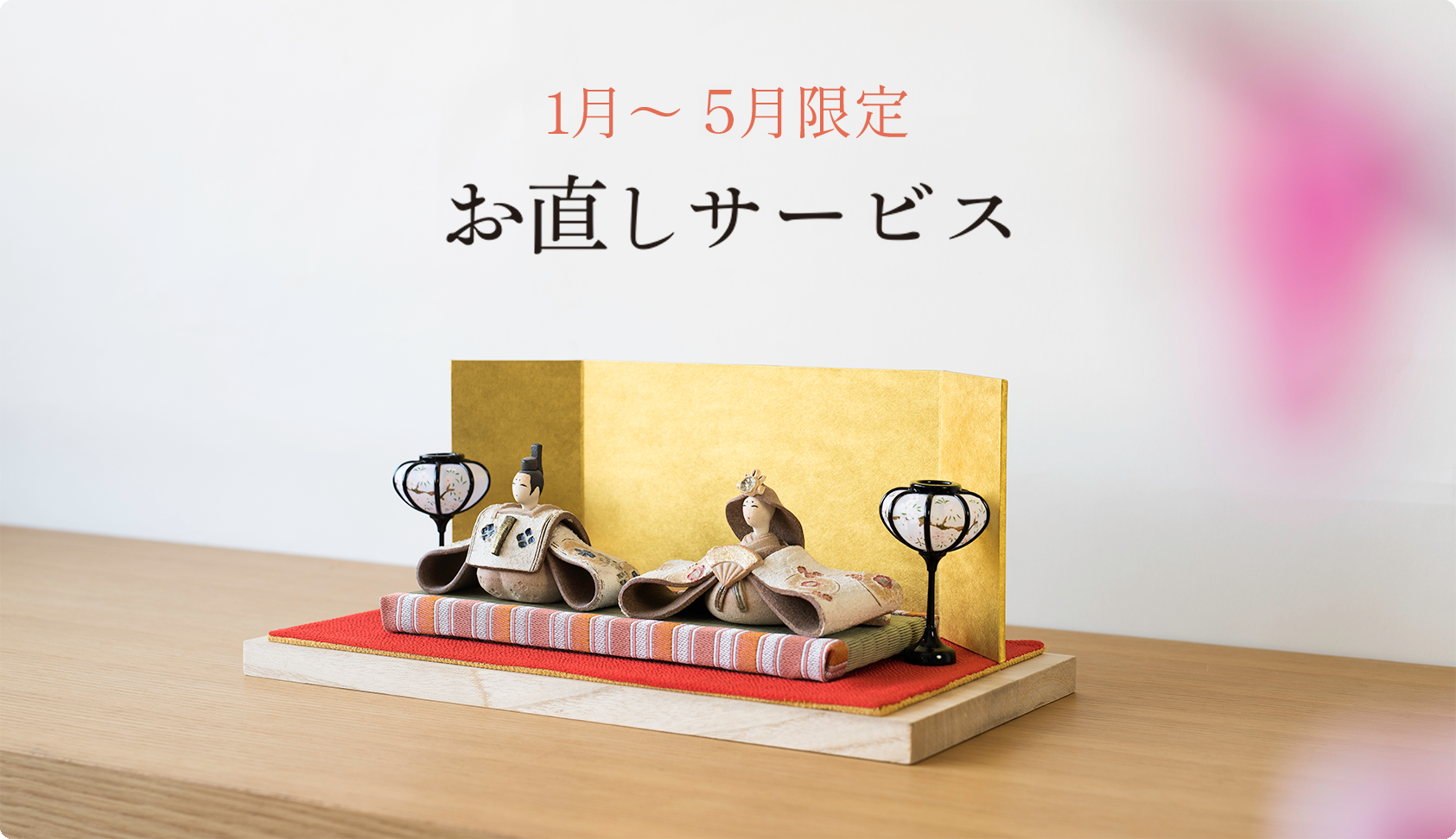 毎年出し入れする雛人形や兜。片づける際に傷つけてしまったり、小さなお子様がついうっかり割ってしまったなんてこともあると思います。そんな壊れてしまった雛人形や兜を一度当社にお送りいただき職人が修理し、お客様の元へお返しするサービスです。長年使っていただきたい商品だからこそ、心を込めて丁寧に直します。サービスの期間は、1月〜5月となっておりますが、場合によっては修理が可能ですのでお気軽にお問合せください。